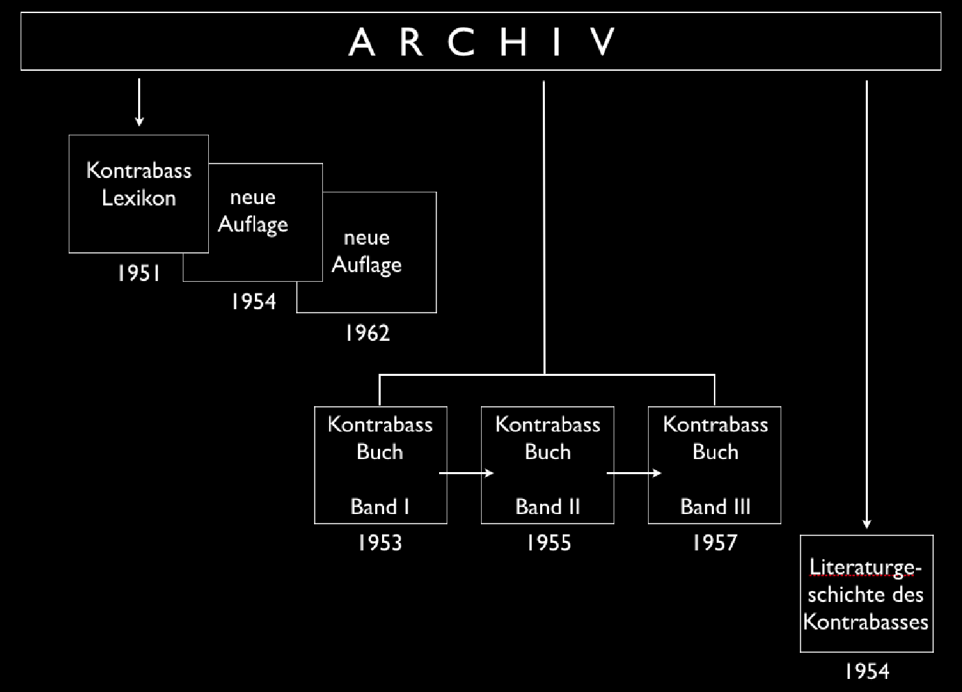 Aus seiner Forschungstätigkeit entstanden zwischen 1951-1962 ein Kontrabass-Lexikon, ein dreibändiges Kontrabassbuch und ein Literaturverzeichnis, sowie eine Arbeit über Serge Koussevitzky, als dieser noch seine Solokarriere als Kontrabassist verfolgte.